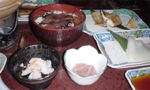 | 1日目の夕食です。「イカそうめん」の 色が・・・変わって・・・しまってた |