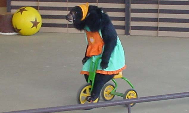 | まずは、お猿さんのショーがありました | 続いて、クマのショーが始まりました |