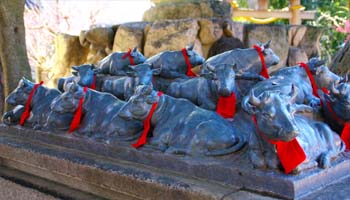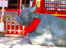 こんなに沢山は、珍しいカモ 丑年に生まれ・丑年に亡くなったという 菅原道真公は、牛を可愛がってたので お葬式の時、棺を引く牛が、涙を流し 座って動かなかったのだそうです。 |